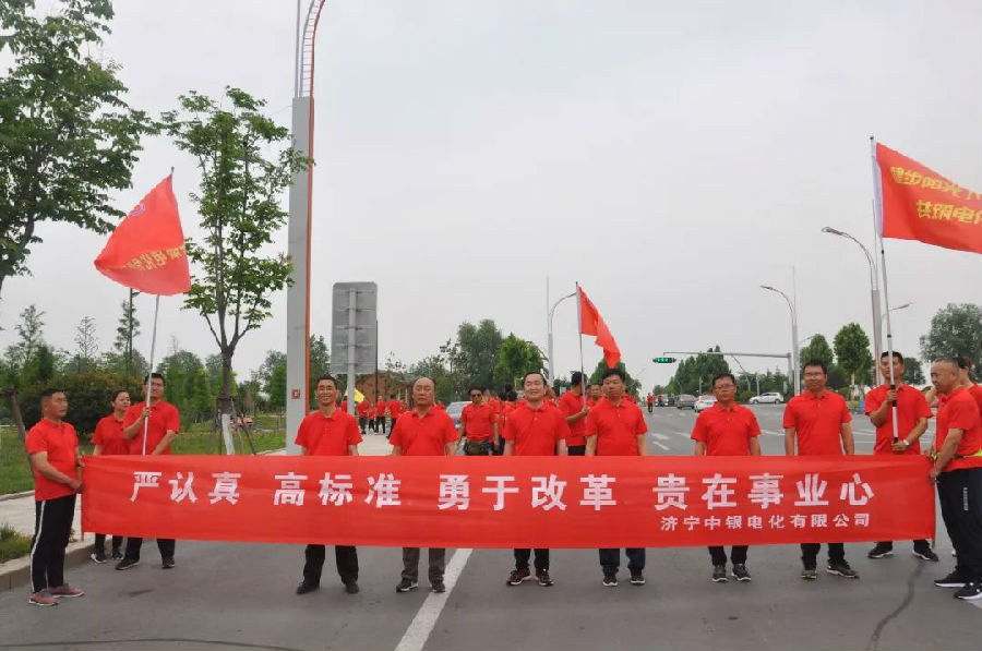 6月2日,中银电化近300名员工齐聚济宁太白湖畔,隆重举办以“健步阳光下,共筑电化梦”为主题的太白湖徒步健身活动。公司董事长总经理赵华盛作动员讲话。